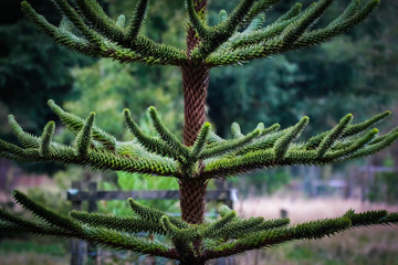 Close up shot of monkey sitting on tree with green nature background. Sacred ubud monkey forest sanctuary