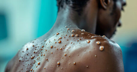 Close up of a black persons back covered in monkeypox rash. Generative ai image
