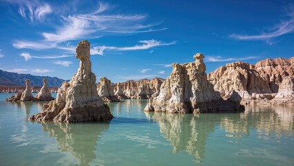 Spectacular Calcium Carbonate Towers at a Remote Lake in the Mountains