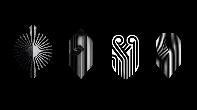 Elegant monogram designs inspired by abstract art with striped patterns on black background for luxury branding and corporate identity
