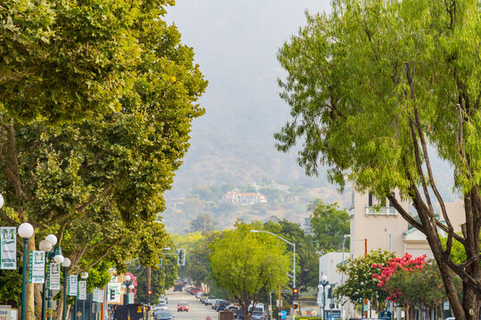 Afternoon view of the downtown urban core of Monrovia, California, USA.
