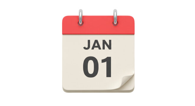 Isolated January 1st Calendar Page