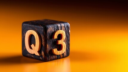 From 2nd to 3rd quarter symbol. Turned a wooden cube and changed words Q2 to Q3 . Beautiful orange table orange background. Business happy 3rd quarter Q3 concept copy space.