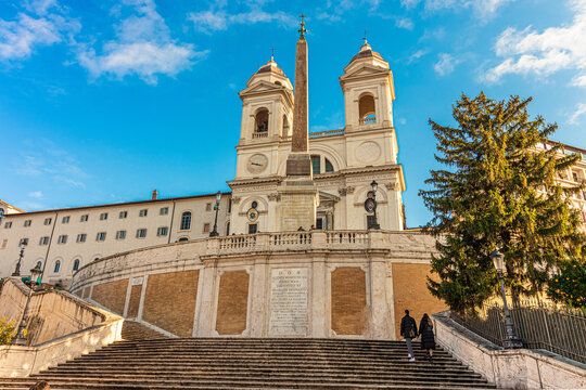 Spanish steps and Trinita dei Monti church in Rome, Italy