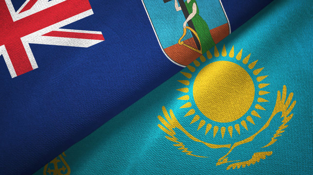 Montserrat and Kazakhstan two flags textile cloth, fabric texture