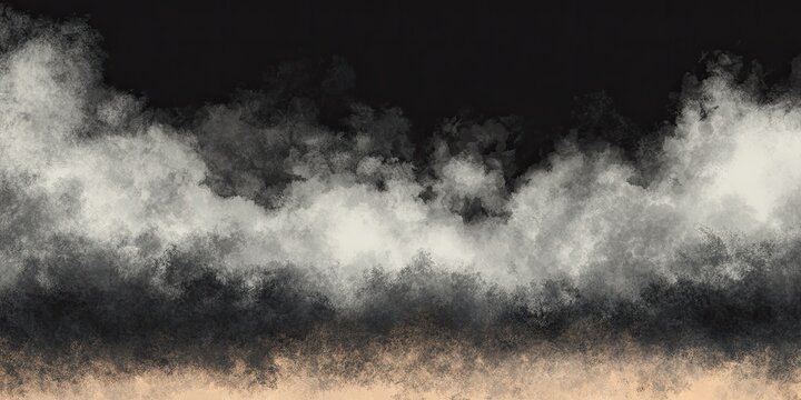 Abstract painting of layered monochrome clouds in varying shades of black, white, and gray creating a textured, moody atmosphere