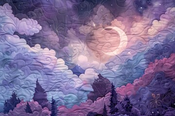 manipulation picture of balloons fly over clouds with moon background, the dream concept.