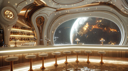 A futuristic moon base features Earth, showcasing space exploration technology.