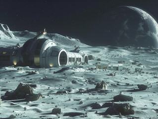 Futuristic Colony on Distant Moon Surface