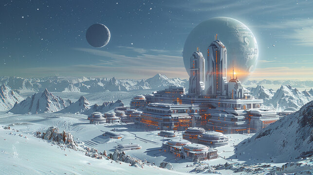 Space colonies of people on other planets. Near space exploration. Colonization of Mars and the Moon. Mining resources in space.