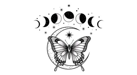 Moon phases arc across starry twilight sky showing full moon and crescent transitions