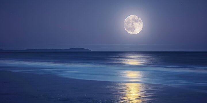 Dramatic full moon reflecting on waves in tranquil ocean scene