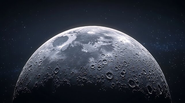 Detailed view of moon's craters in dark night sky