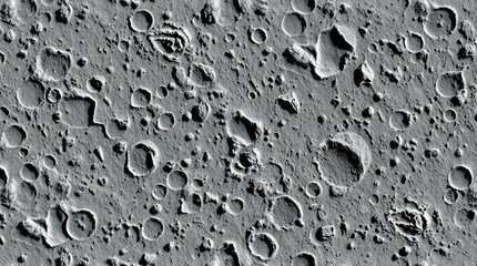 Texture of the moon's surface with craters in grayscale photography, Space exploration and geology concept. Close up rocky surface with many craters, surface is dark.