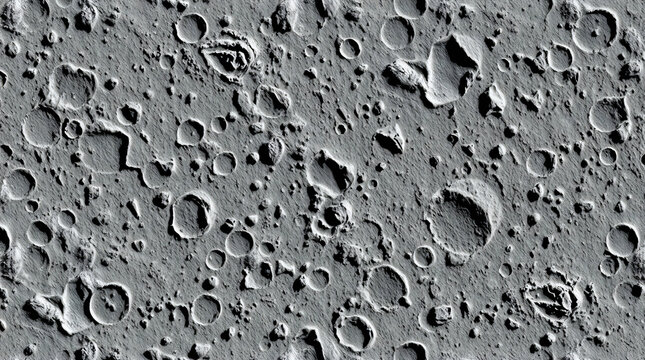 Seamless moon surface close up background texture. Tileable greyscale lunar, meteor craters, rocks and furrows planetary pattern. Astronomy concept wallpaper, space backdrop