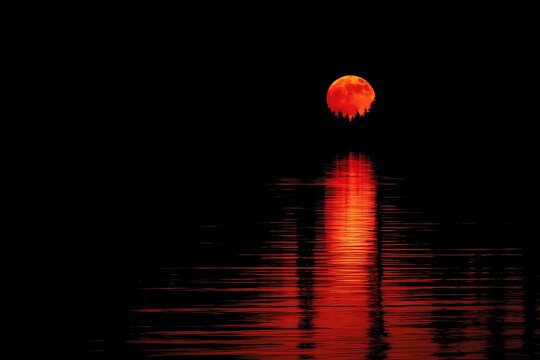 Full Moon over Calm Lake at Night.
