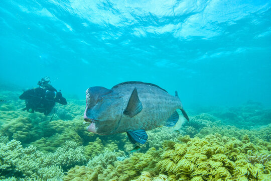 bumphead parrotfish spotted in moore reef in the great barrier reef