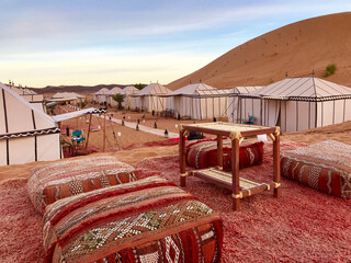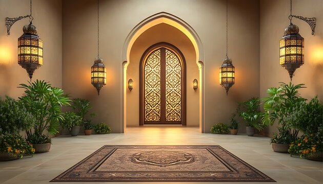 Ornate lanterns casting warm light against intricate tiled walls in a vibrant Moroccan setting