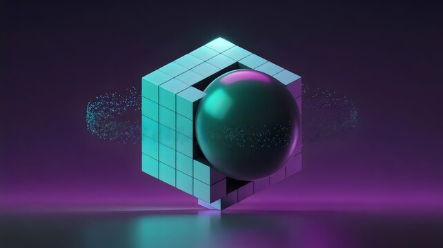 Digital cube morphing into sphere with glowing particles – Great for tech branding, AI evolution, or digital transition concepts