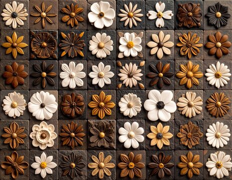 Stone or wooden mosaic with flowers