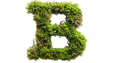 Green moss in shape alphabet letter B isolated on a transparent background