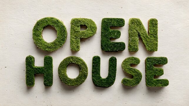 Open House Sign Made of Green Moss on White Background for Real Estate Marketing