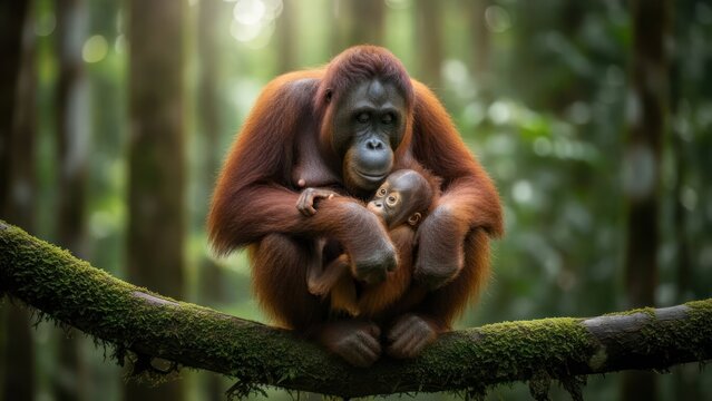 Vibrant toucan perched on mossy branch in lush tropical rainforest