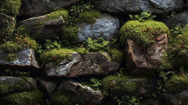 seamless nature background texture featuring lush green moss on a rugged stone wall perfect for capturing the beauty of nature