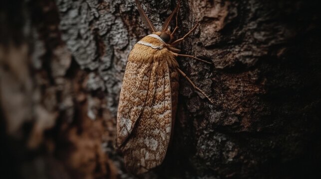 Close-Up of a Moth Resting on a Dew-Covered Leaf in Nature