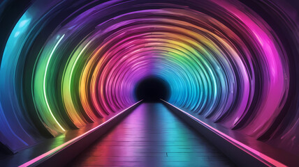 Futuristic Glowing Rainbow Tunnel with Psychedelic Vibes