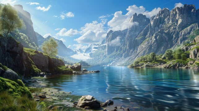 Chinese painting style landscape. asian traditional culture. illustration, drawing, image created with ai. relaxation. tranquillity