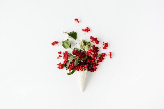 a sprig of mountain ash on a white background, a box in the background in focus, isolate