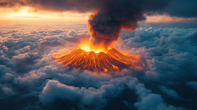 Spectacular mountain ridge bathed in dawn's golden glow above clouds