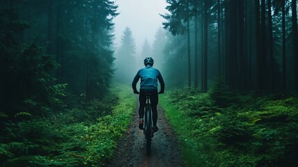 Cyclist navigating forest path on scenic adventure ride