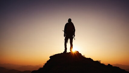 Silhouette climber gripping vertical rock face backlit high-contrast outdoor adventure