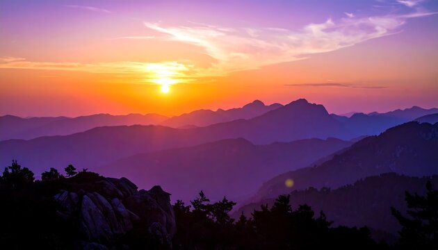 Breathtaking sunrise over mountain range with dramatic sky