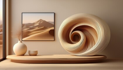 Floating sphere with inverted mountain and clouds in surreal atmosphere