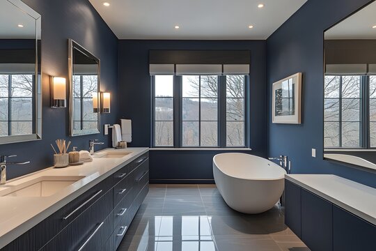 Senior man relaxing by window with smartphone, enjoying mountain views
