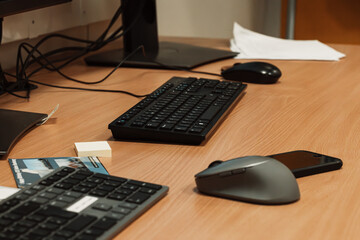 office desk with keyboard and mouse