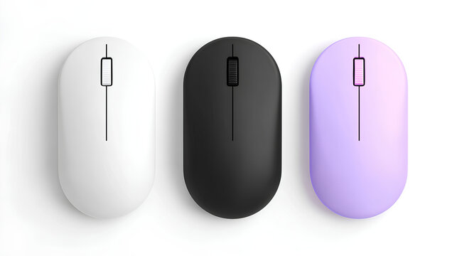 Top view of wireless ergonomic mouse for computer and laptop on white background