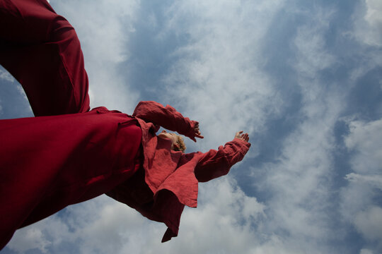 Caucasian female dancer mastering creative dance movement in studio