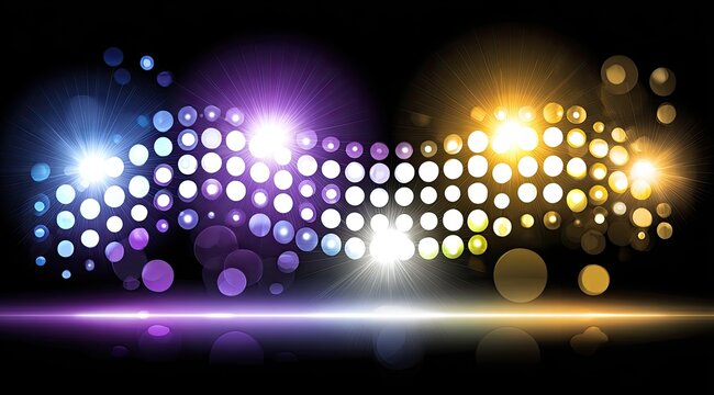 Vibrant sound waves forming with dots and lens flares on black