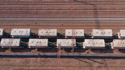 Freight train, transportation of railway cars by cargo containers  shipping. Railway logistics concept