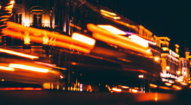 Vibrant urban city lights with colorful bokeh effect