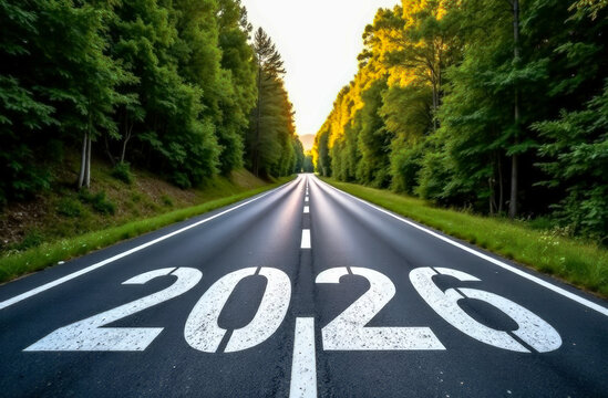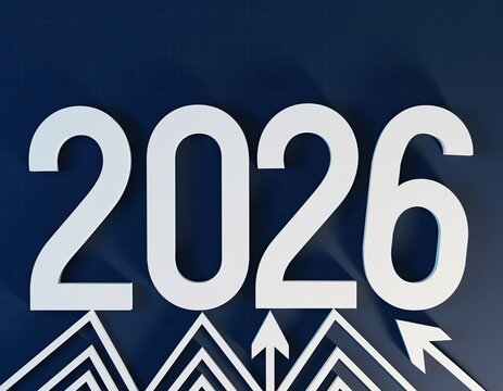 Goals moving forward to 2026, road to next, numbers on wooden box on blue background.,Entering 2026