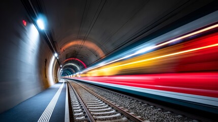 Hypnotic lights tunnel with fast-moving red and yellow streaks