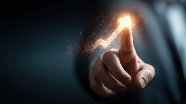 Ascending Trajectory: A symbolic depiction of growth as a hand elegantly traces an upward-pointing arrow. The image captures the essence of progress and ambition.