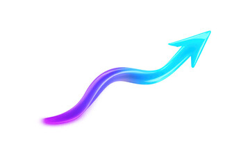 Wavy 3d arrow moving upward, indicating growth, progress, business success, and financial direction on a transparent background