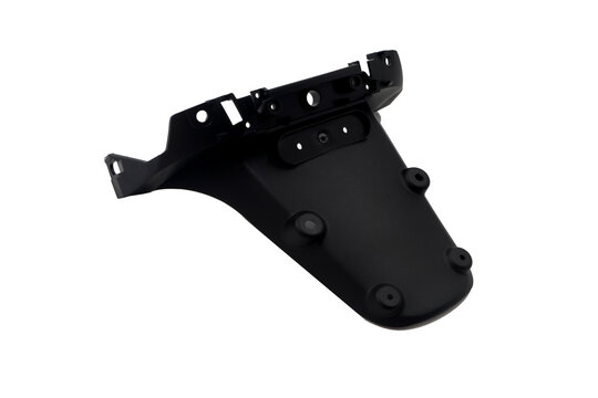 Sleek black bicycle fender isolated against pure white backdrop showcases modern design