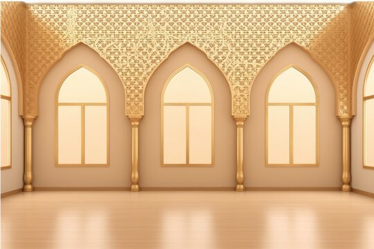 Intricate golden archway adorned with detailed carvings and hanging lamps, showcasing exquisite mughal architecture and rich heritage